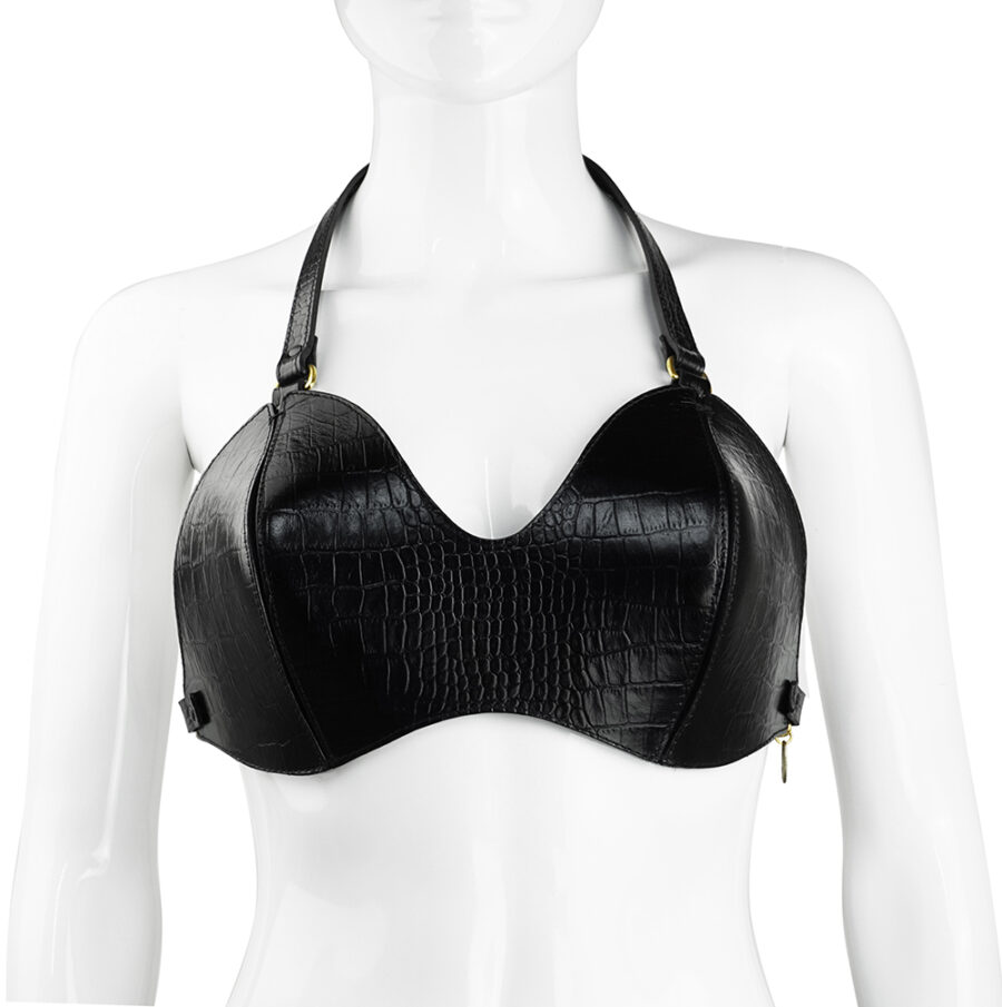 The Black Crocodile leather is ‘embossed cowhide’ & is lined & backed with smooth black Italian hide
